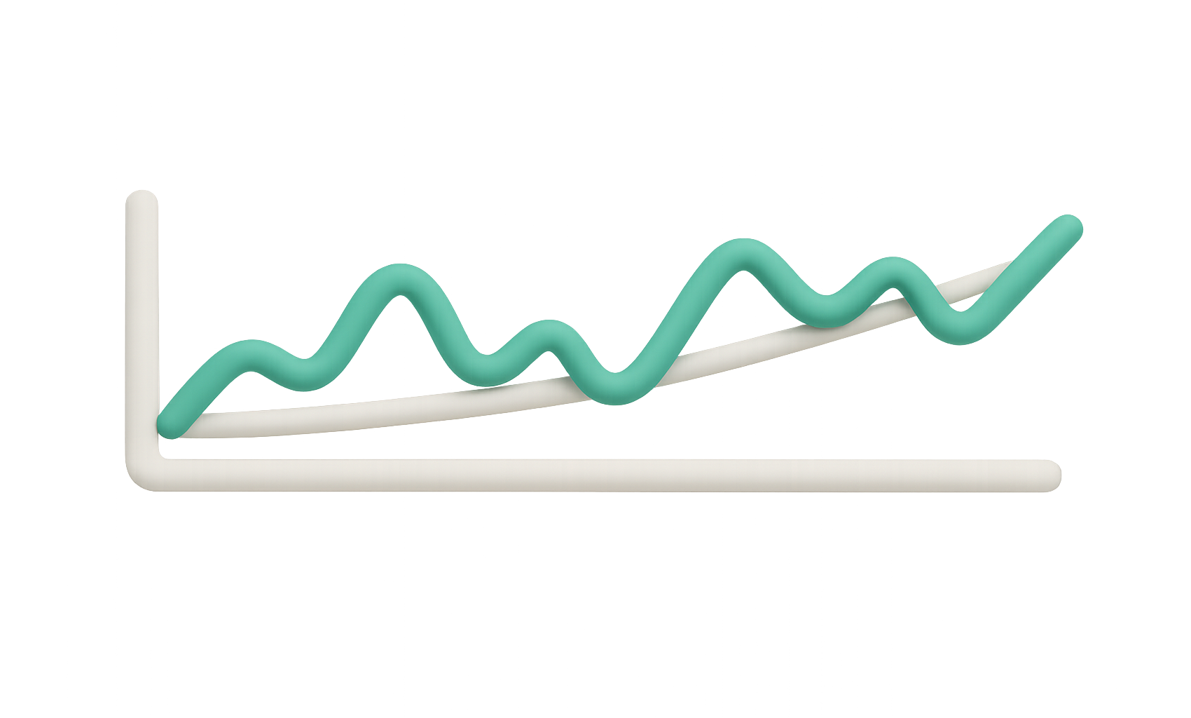 If you zoom out to decades of stock market history, you mainly see one upward line. The peaks and valleys almost disappear in the bigger picture. Historically, global stock investing yields an average of about 8% per year.